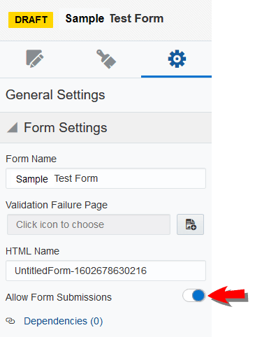 Note: If the Allow Form Submissions option is disabled, a user who tries to submit the form via the landing page will see an error message.