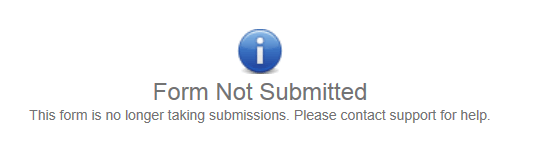 - Allow Form Submissions: Set whether those with the URL can input information on your form. This is the default option. If the option is disabled, the form remains visible but will not accept submissions via the landing page or endpoints (API), and any API submissions that are queued will not process. Disabling the Allow Form Submissions option prevents spam attacks on old or new forms.