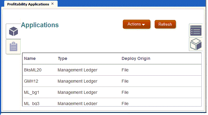 La console delle applicazioni Profitability può essere aperta da Oracle Hyperion Enterprise Performance Management Workspace.