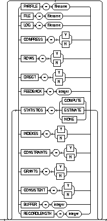 Note: Although the actual consolidation is performed upon import, you can specify the COMPRESS parameter only when you export, not when you import. The Export utility, not the Import utility, generates the data definitions, including the storage parameter definitions. Thus, if you specify COMPRESS=Y when you export, you can import the data in consolidated form only.