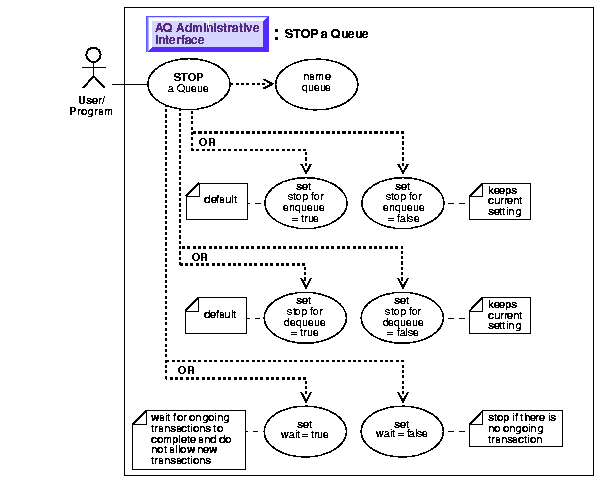 s. A queue cannot be stopped if there are outstanding transactions against the queue. This operation takes effect when the call completes and does not have any transactional characteristics.
