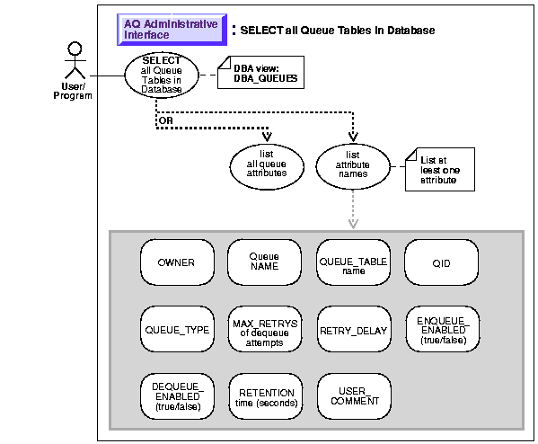 Users can specify operational characteristics for individual queues. DBA_QUEUES