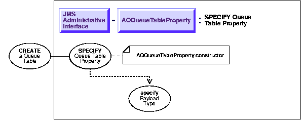 QueueSession q_sess = null; AQQueueTable q_table = null; AQQueueTableProperty qt_prop = null; qt_prop = new AQQueueTableProperty("SYS.AQ$_JMS_BYTES_MESSAGE"); q_table = ((AQjmsSession)q_sess).createQueueTable("boluser", "bol_ship_queue_table", qt_prop);