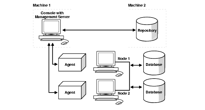 You can install the Management Server and the Console on the machine where the repository database resides or on individual machines. If you purchased Oracle Diagnostics Pack, you can install Oracle Diagnostics Pack and Oracle Enterprise Manager together.