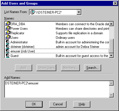 On Windows NT, you must create a Windows NT user account using the next procedure. To create a user account on each node of the cluster: