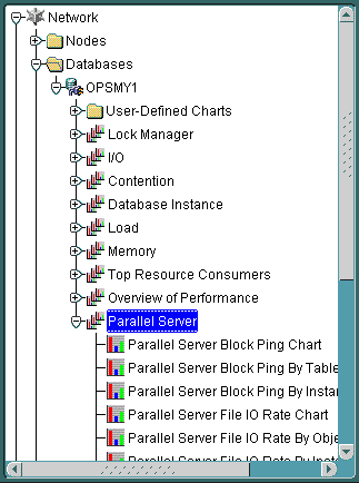 You can access Oracle Parallel Server charts from the Parallel Server Instance folder or from the Databases folder.