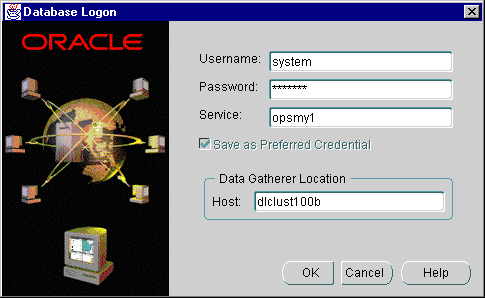 The credentials you configure must identify a valid DBA user with SYSDBA or SYSOPER privileges for the Oracle Parallel Server database on the target node. This enables you to expand the Oracle Parallel Server database folder in the Navigator window and to perform connection and job execution operations. If you do not identify a valid database user, Oracle Enterprise Manager prompts you for this information each time you attempt to connect to the database.