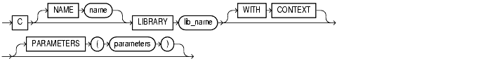 is an alternative way of declaring a C method. This clause has been deprecated and is supported for backward compatibility only. Oracle Corporation recommends that you use the call_spec syntax with the C_declaration. |