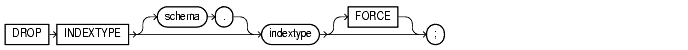 drops the indextype even if the indextype is currently being referenced by one or more domain indexes, and marks those domain indexes |