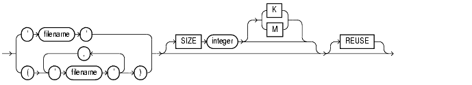 All of these filespecs specify a value for the SIZE parameter and omit the REUSE clause, so none of these files can already exist. Oracle must create them.