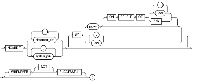 stops auditing only for the SQL statements issued by the specified proxy, on behalf of a specific user or any user. |
