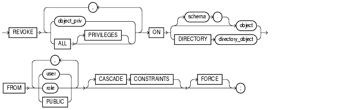 identifies a directory object on which privileges are revoked. You cannot qualify directory_object with schema when using the |