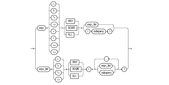 A simple comparison condition specifies a comparison with expressions or subquery results.