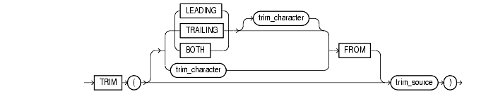 enables you to trim leading or trailing characters (or both) from a character string. If trim_character or trim_source is a character literal, you must enclose it in single quotes.