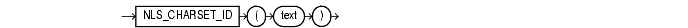 returns the NLS character set ID number corresponding to NLS character set name, text. The text argument is a run-time VARCHAR2