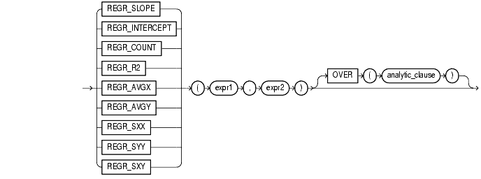Oracle applies the function to the set of (expr1, expr2) pairs after eliminating all pairs for which either expr1 or expr2 is null. Oracle computes all the regression functions simultaneously during a single pass through the data.