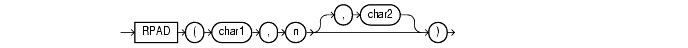 returns char1, right-padded to length n with char2, replicated as many times as necessary; char2 defaults to a single blank. If char1 is longer than n, this function returns the portion of char1 that fits in n.