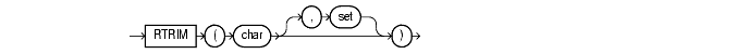 returns char, with all the rightmost characters that appear in set removed; set defaults to a single blank. If char is a character literal, you must enclose it in single quotes. RTRIM