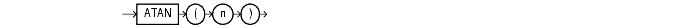 returns the arc tangent of n. Inputs are in an unbounded range, and outputs are in the range of -pi/2 to pi/2 and are expressed in radians.