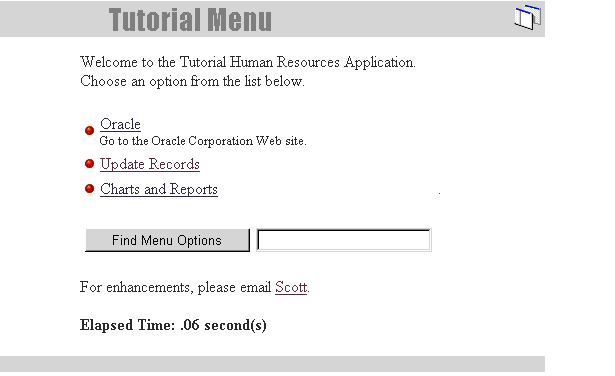 Now only members of the HR_TUTORIAL role will be able to view the Update Records submenu hypertext link on Tutorial Menu.