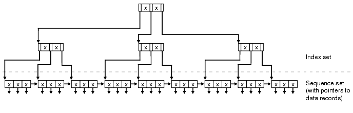While there is no single indextype that can satisfy all needs, the B-tree indextype comes closest to meeting the requirement. Here we describe the Knuth variation in which the index consists of two parts: a sequence set that provides fast sequential access to the data, and an index set that provides direct access to the sequence set.