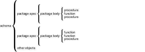 The package spec contains public declarations. The scope of these declarations is local to your database schema and global to the package. So, the declared items are accessible from your application and from anywhere in the package. Figure 8-2 illustrates the scoping.