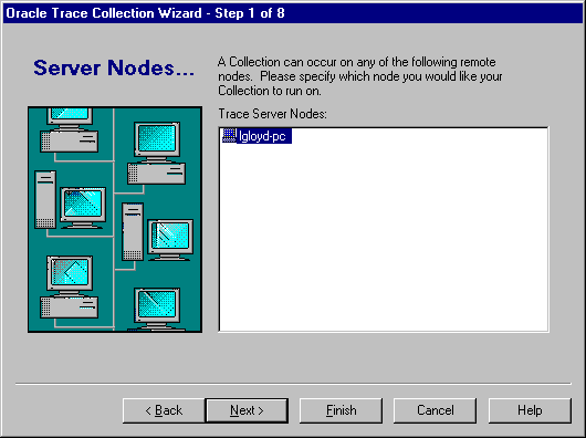 These are the server nodes that contain valid Oracle installations for running Oracle Trace collections. Select from this list to identify the node where the collection is to be run.
