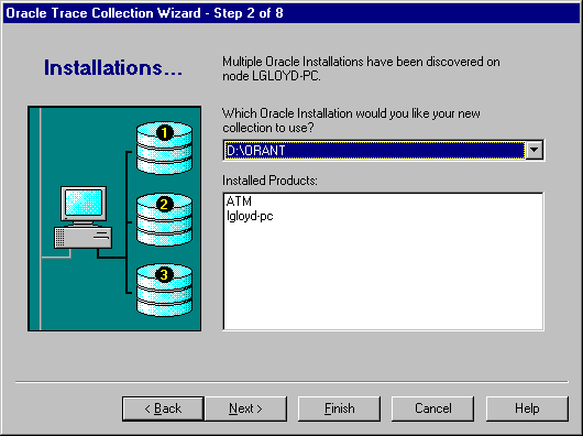 You see this page only if Oracle Trace has been installed in more than one $ORACLE_HOME on the node. Otherwise, you will not be prompted with this page. The discovery mechanism locates all $ORACLE_HOME installations on a node. Each $ORACLE_HOME installation represents a different version of the Oracle products.