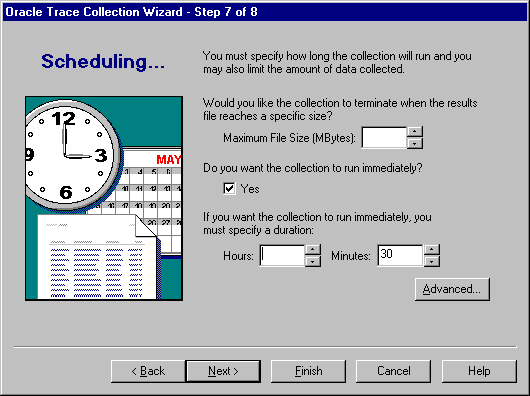 Click the Advanced... button to display the advanced scheduling options, as described in the next section. If you do not choose to run the collection immediately, you need to supply the advanced scheduling options.