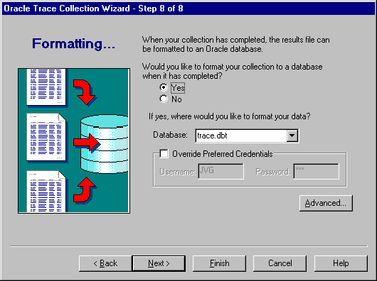 In step 8, you have the option of automatically formatting your collection data to an Oracle database when the collection ends (see Figure 3-12).