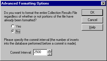 Choose No if you do not want to format your collection to a database when the collection is completed.