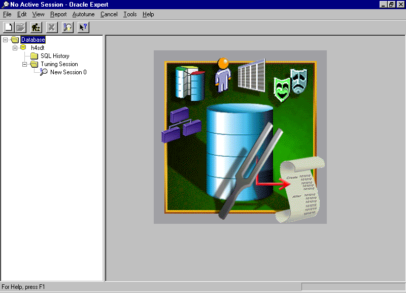 When you launch Oracle Expert, the Oracle Expert main window displays, as shown in Figure 10-1. Click F1 from this page for more information.