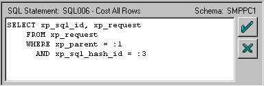 The SQL Statement Object contains a single specific syntactical version of a SQL statement. Clicking on this object displays the statement in the SQL Text window.