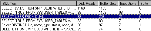 When you are using TopSQL or SQL History, the SQL Text window displays multiple SQL statements, sorted by order of resource consumption, as shown in Figure 4-4. You can drag these statements over to the Navigator window to create SQL Statement objects.
