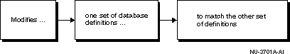 Modifies a set of database definitions to match another set of database definitions.