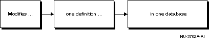 Modifies one definition in one database.