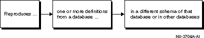 Reproduces one or more definitions from a database in that database or in another database.