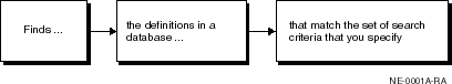 The DB Search application lets you search for database objects that match a set of search criteria that you specify. After DB Search completes a search operation, you can view or modify the object definitions that matched the search criteria.