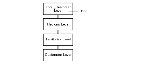 A dimension is a structure, often composed of one or more hierarchies, that categorizes data. Several distinct dimensions, combined with measures, enable you to answer business questions. Commonly used dimensions are Customer, Product, and Time. Figure 2-2 shows some a typical dimension hierarchy.