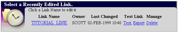 - In the Manage Links page, scroll down to the Select a Recently Edited Link panel.