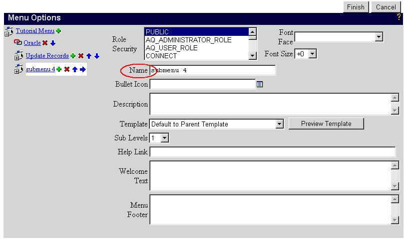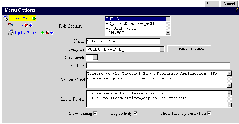 Now only members of the HR_TUTORIAL role will be able to view the Update Records submenu hypertext link on Tutorial Menu.