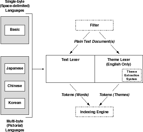For more information about text and theme queries, see "Text/Theme Queries" in Chapter 6, "Text Concepts". For more information about text indexing and theme indexing policies, see "Text Lexers" and "Theme Lexer" in this chapter. For a complete discussion of text and theme queries, see Oracle8 ConText Cartridge Application Developer's Guide. |