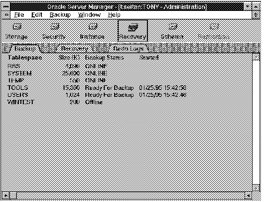 Once you have completed your backup of the tablespace, mark the end of the backup. To mark the completion of an online tablespace backup, choose End Online Backup from the Backup menu.