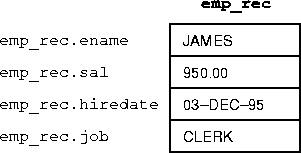 Columns in a row and corresponding fields in a record have the same names and datatypes. In the example below, you declare a record named dept_rec