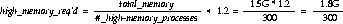 Suppose your system has 2G of memory, and you have 200 parallel server processes and 100 users doing heavy data warehousing operations involving hash joins. You decide to leave such tasks as index retrievals and small sorts out of the picture, concentrating on the high memory processes. You might have 300 processes, of which 200 must come from the parallel pool and 100 are single threaded. One quarter of the total 2G of memory might be used by the SGA, leaving 1.5G of memory to handle all the processes. You could apply the formula considering only the high memory requirements, including a factor of 20% oversubscription: