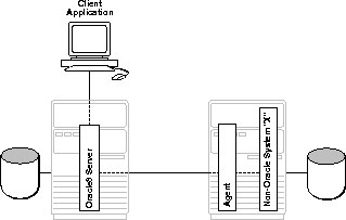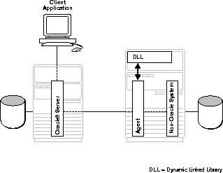 An agent is required to access a particular non-Oracle system from an Oracle8 server. The Oracle server communicates with the agent. The agent communicates with a particular non-Oracle system.
