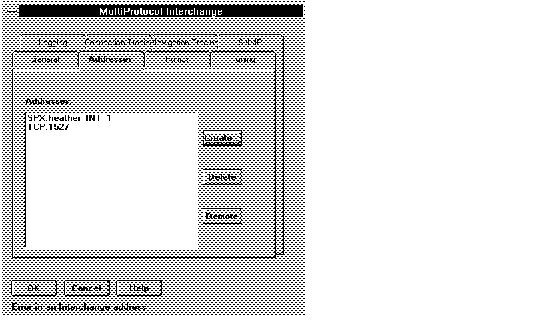 In these address windows, the administrator selected the community from the drop-down list. The protocol-specific keywords and default values in both these addresses were supplied by the Network Manager. (Note, however, that some other protocols have parameters that require administrator input.)