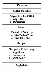 The Oracle Security Server supports X.509 version 1 certificates. (The 0 in the Version area of the certificate, as described in the section "Certificates" that appears earlier in this chapter, refers to version 1. Future releases of the Oracle Security Server will support version 3 certificates, which correspond with the value 1 for Version.)