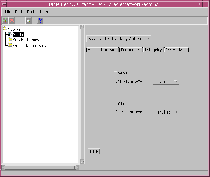Configure Clients, and Servers, to use encryption as follows. Refer to Figure 3-1, "Oracle Net8 Assistant Profile Encryption Tab".