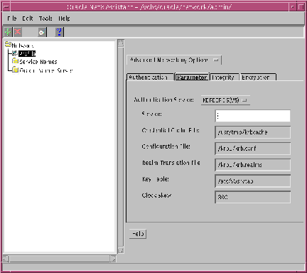You now must configure the authentication parameters. Refer to Figure 3-3, "Oracle Net8 Assistant Profile Parameter Tab". You must provide the value for only one parameter: GSSAPI Service.